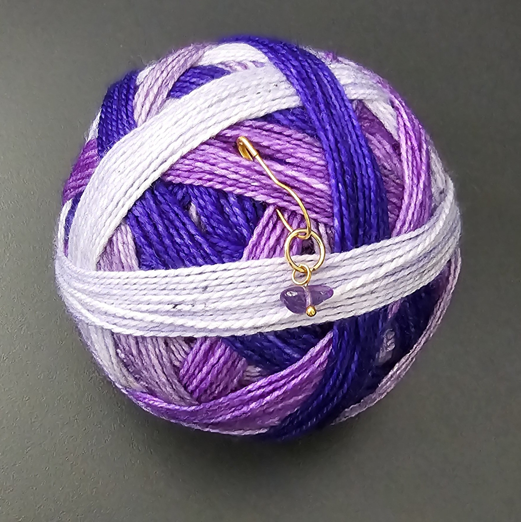 Each yarn ball comes with a coordinating stitch marker.